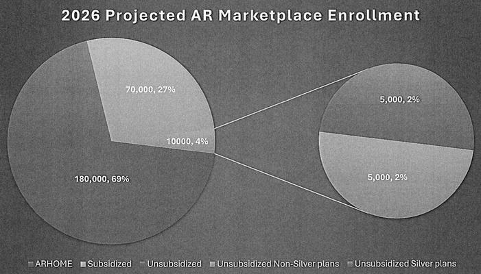 THERE's the problem: Arkansas marketplace enrollment (NOT including ARHOME enrollees) as of the end of the 2025 Open Enrollment Period (OEP) was 166,639. When you include the roughly ~191,000 ARHOME enrollees as of May 2025, the combined total is around 357,000.