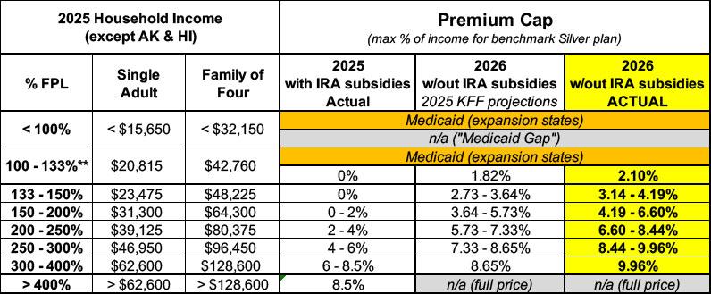 HOWEVER, as I also explained a few months ago, the change in the Premium Adjustment Percentage Index (PAPI) formula by the Trump Regime means that even the non-enhanced tax credit formula will become EVEN LESS generous yet: