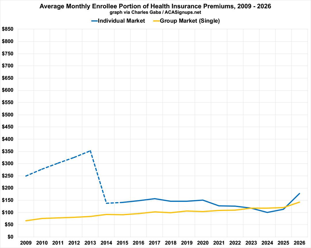 This changed starting in 2026, of course, as the enhanced tax credits expired & net ACA premiums shot way up, from around $113/mo to $178/mo on average.