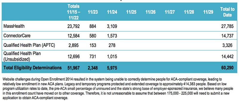 Massachusetts continues to kick butt this time around in general, but I particularly like that they're providing a daily breakout of their enrollment data. Check today's out, which includes both Wednesday and Thanksgiving Thursday: