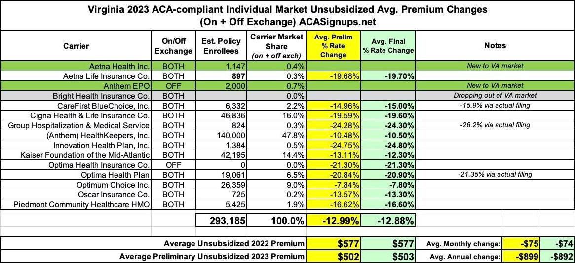 The most significant thing to impact Virginia carriers 2023 filings was the state's Section 1332 Reinsurance Waiver. I wrote about this way back in 2018 when the state was originally considering applying for one, but it didn't actually go into effect until January 2023: