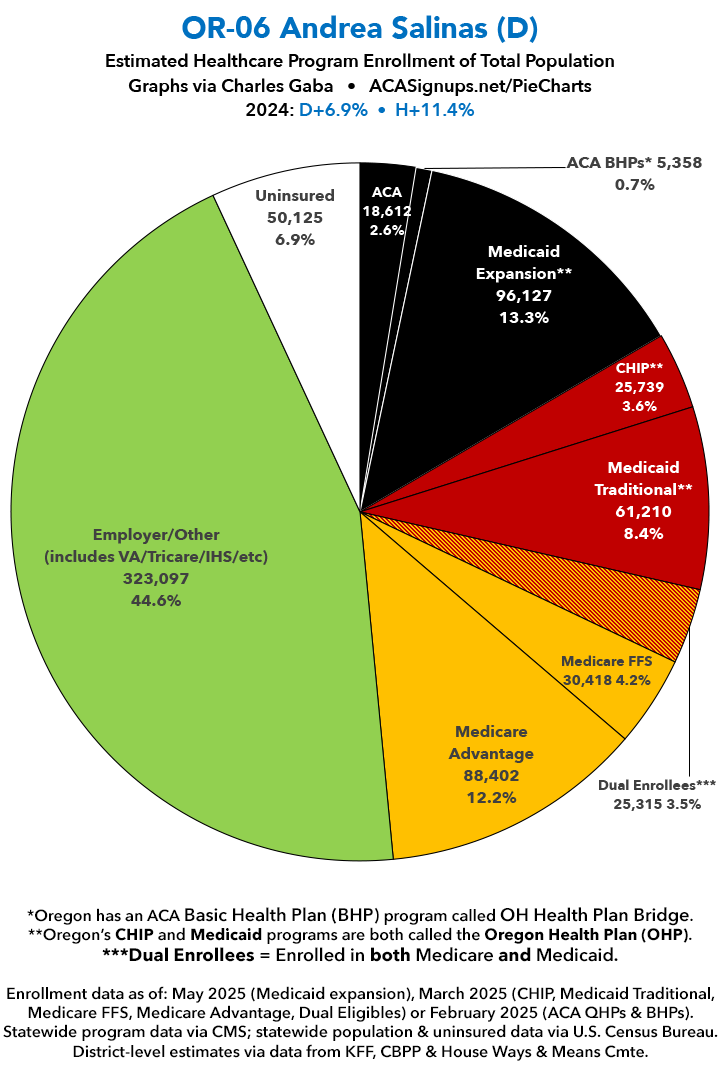 UPDATE 7/10/25: I've updated the web versions of the graphics with the most up-to-date enrollment data I have access to. The black sections w/the ⚠️ symbol are those most at risk of losing healthcare coverage due to H.R. 1, the "One Big Beautiful Bill Act" (aka the #MAGAMurderBill).