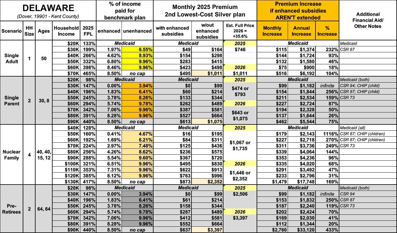 How much more will ~52,000 DELAWARE residents pay if the improved #ACA subsidies expire? (updated)