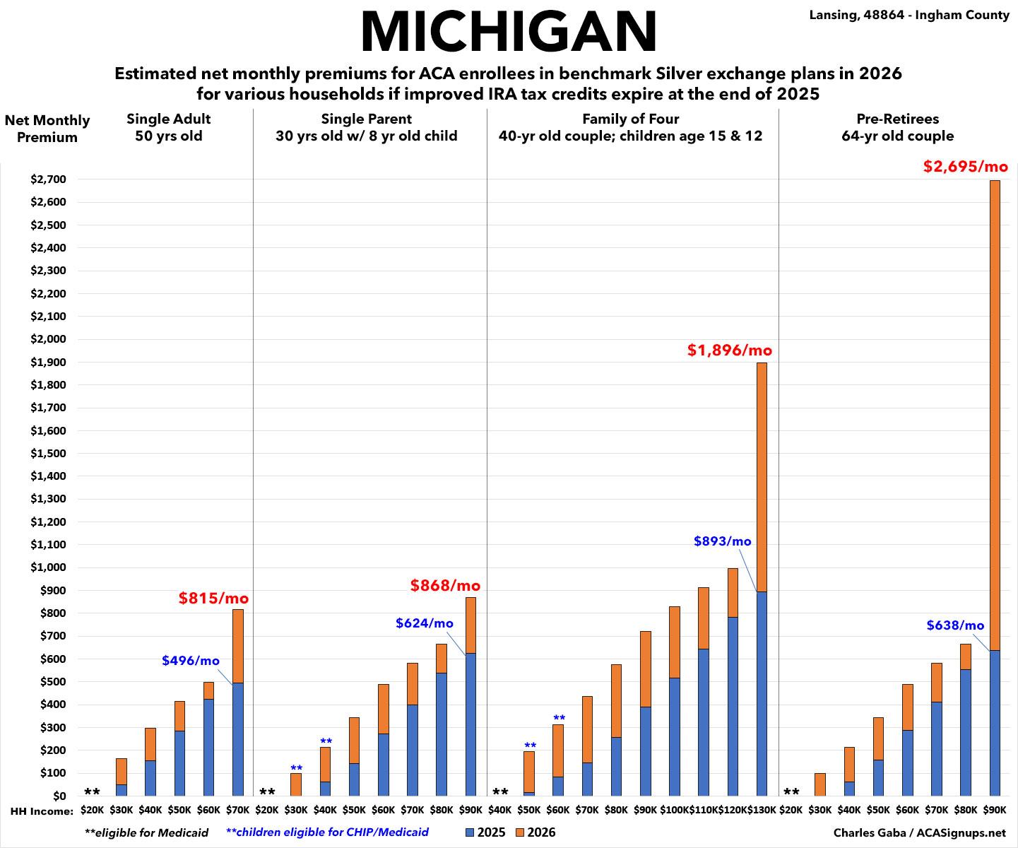 How much more will over 500,000 MICHIGAN residents pay if the improved #ACA subsidies expire? (updated)