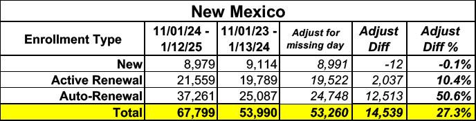 Not only is New Mexico's exchange enrollment up a whopping 28% vs. the same point last year, it's 20% higher than the 2024 OEP's final total of 56,472.