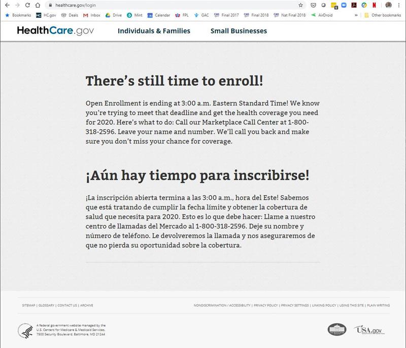 California actually launched Open Enrollment for 2020 on October 15th, but for the other 49 states (+DC) it starts on November 1st. The deadline for Open Enrollment is December 15th in most states for coverage starting January 1st, 2020, but eight states which operate their own ACA exchanges have extended deadlines: