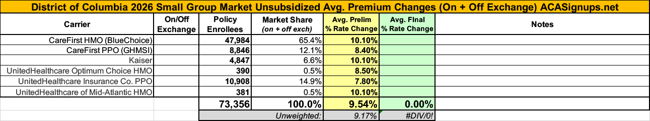UPDATE 9/27/25: The DC Dept. of Insurance, Securities & Banking has published the final/approved 2026 individual market rate filings, and the weighted average has dropped by several points to 8.7%.