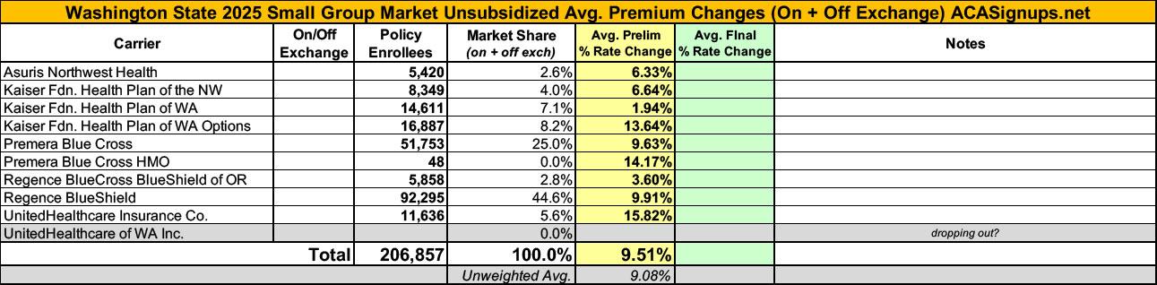 2026 Final Gross Rate Changes - Washington: +21% avg; ~305,000 enrollees are in for a hell of a shock this fall (updated)
