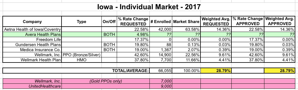 All of the above numbers are important when attempting to estimate the weighted average rate hikes requested by ND carriers, because of the 3 operating on the individual market (BCBS, Medica and Sanford), only one of them, Medica, has provided their actual 2016 enrollment tally (7,329).