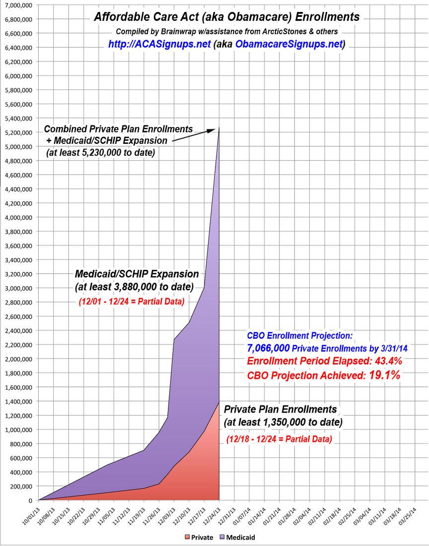 OK, I'm not sure how much this particular milestone should be crowed about considering that over 40% of the enrollment period has elapsed, but new actual numbers have been rather thin over the weekend, so I figured I'd call some attention to it.