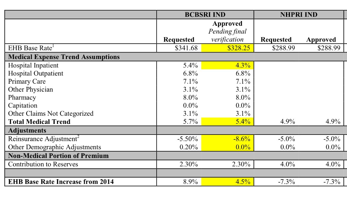 As you can see, BCBSRI asked for an average rate increase of 8.9%. The state insurance commissioner approved...4.5%.